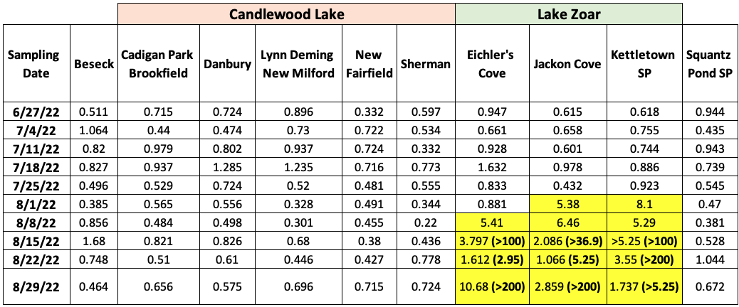 U.S. EPA (2016) draft recommended threshold for recreational use: 4 µg/L (parts per billion; ppb).